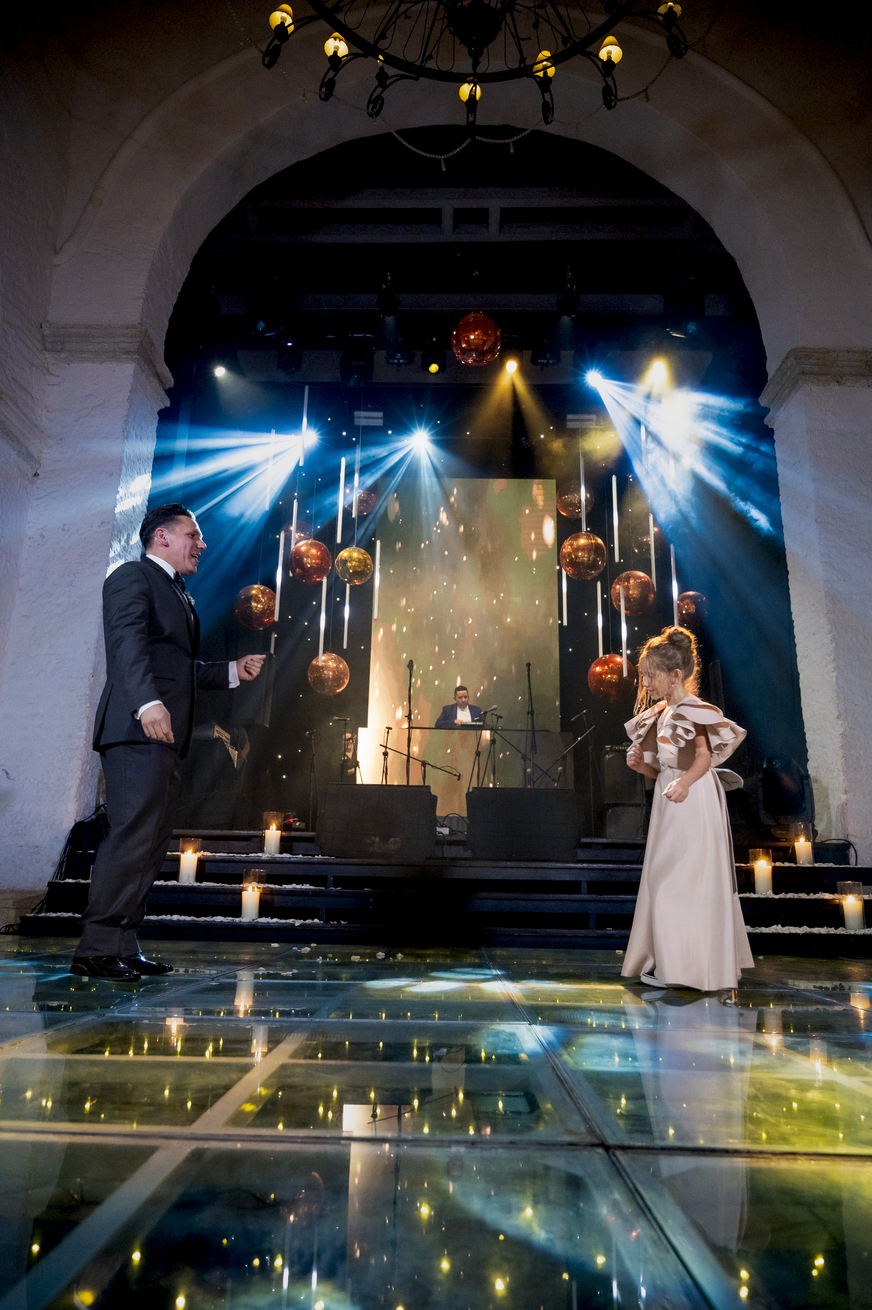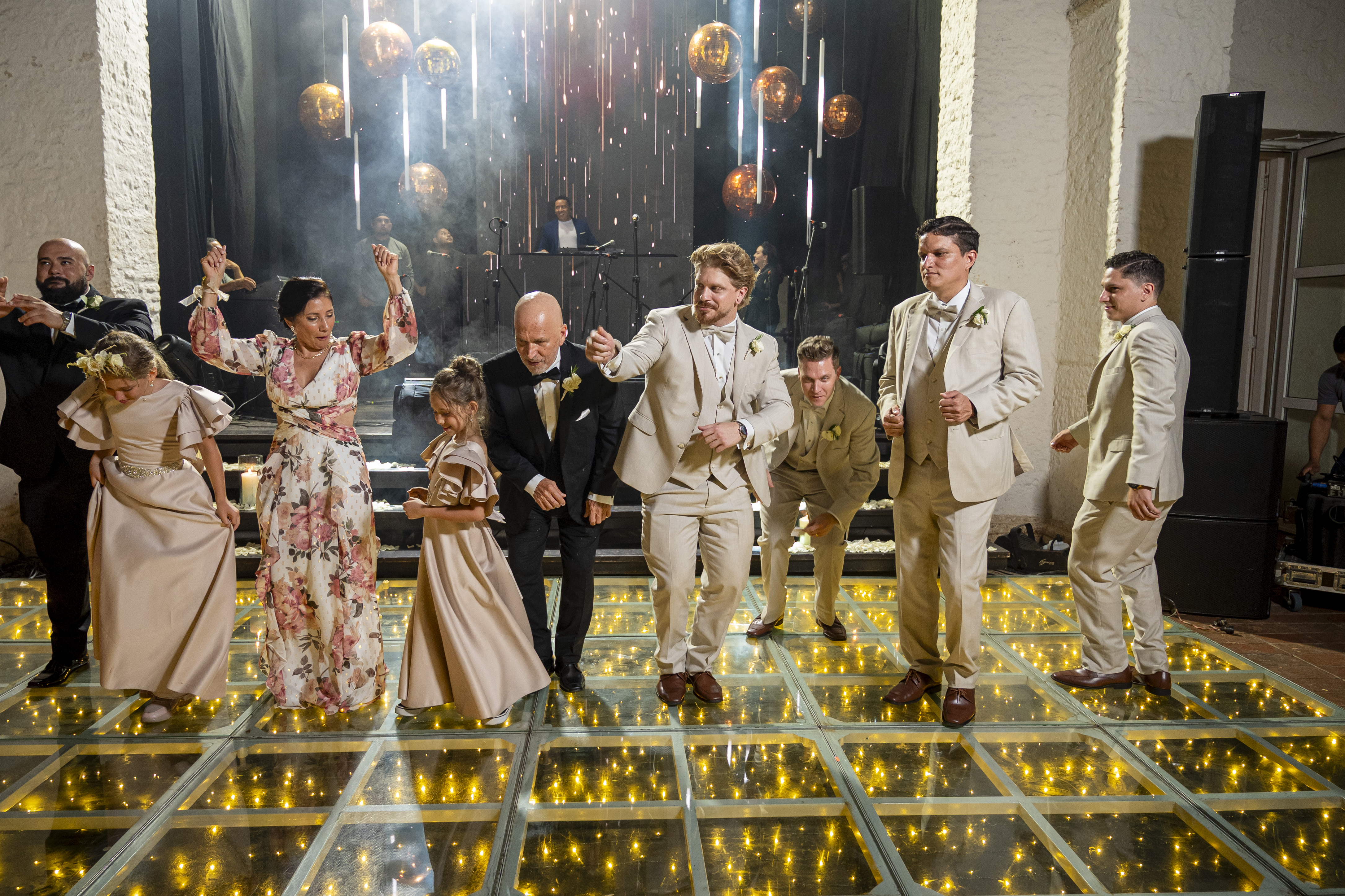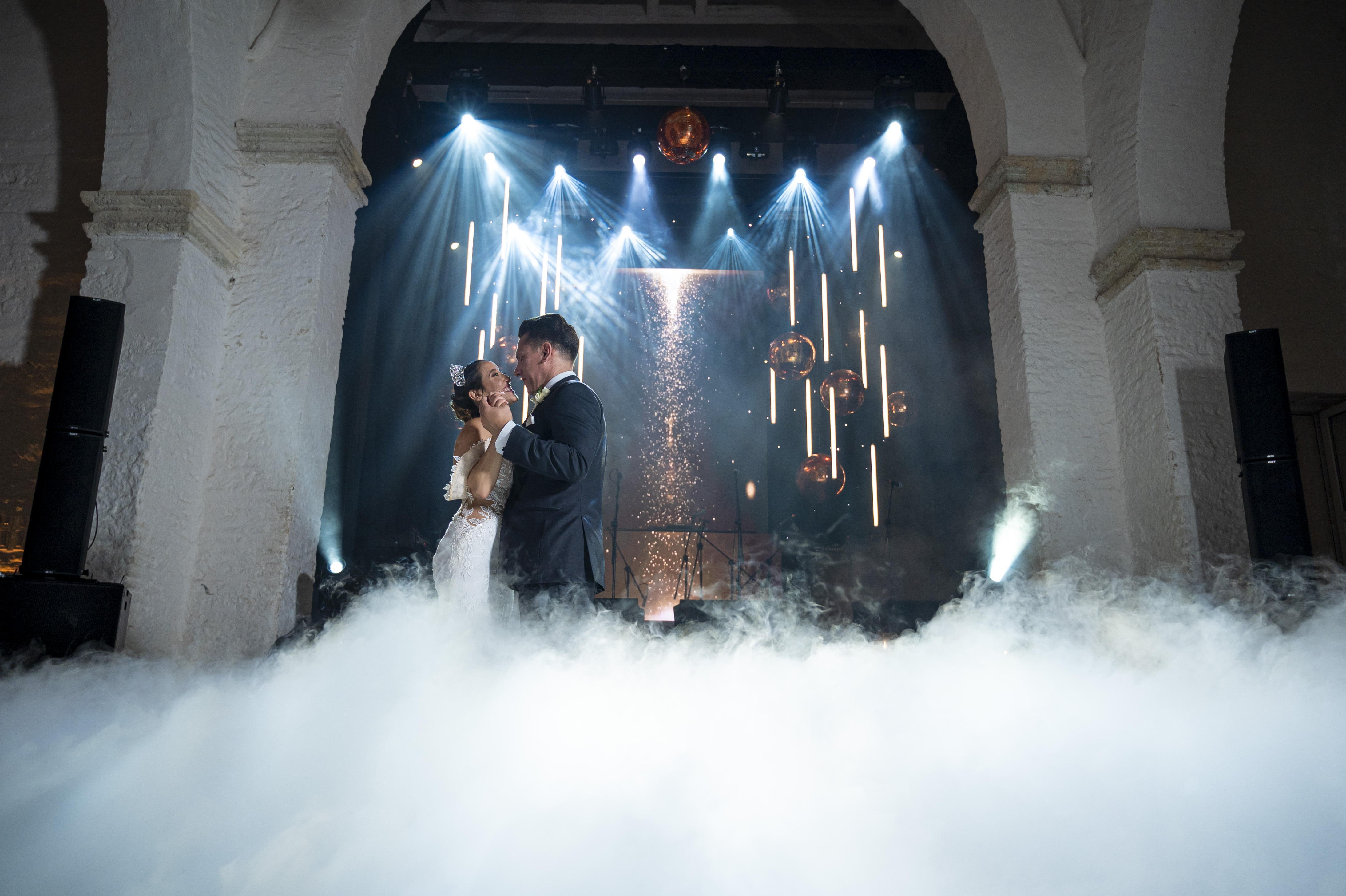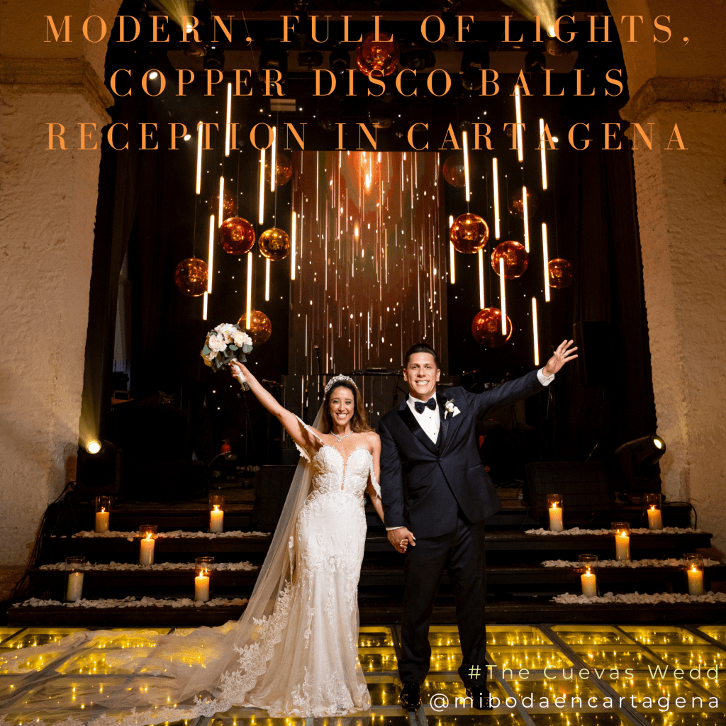 MODERN, FULL OF LIGHTS, COPPER DISCO BALLS WEDDING