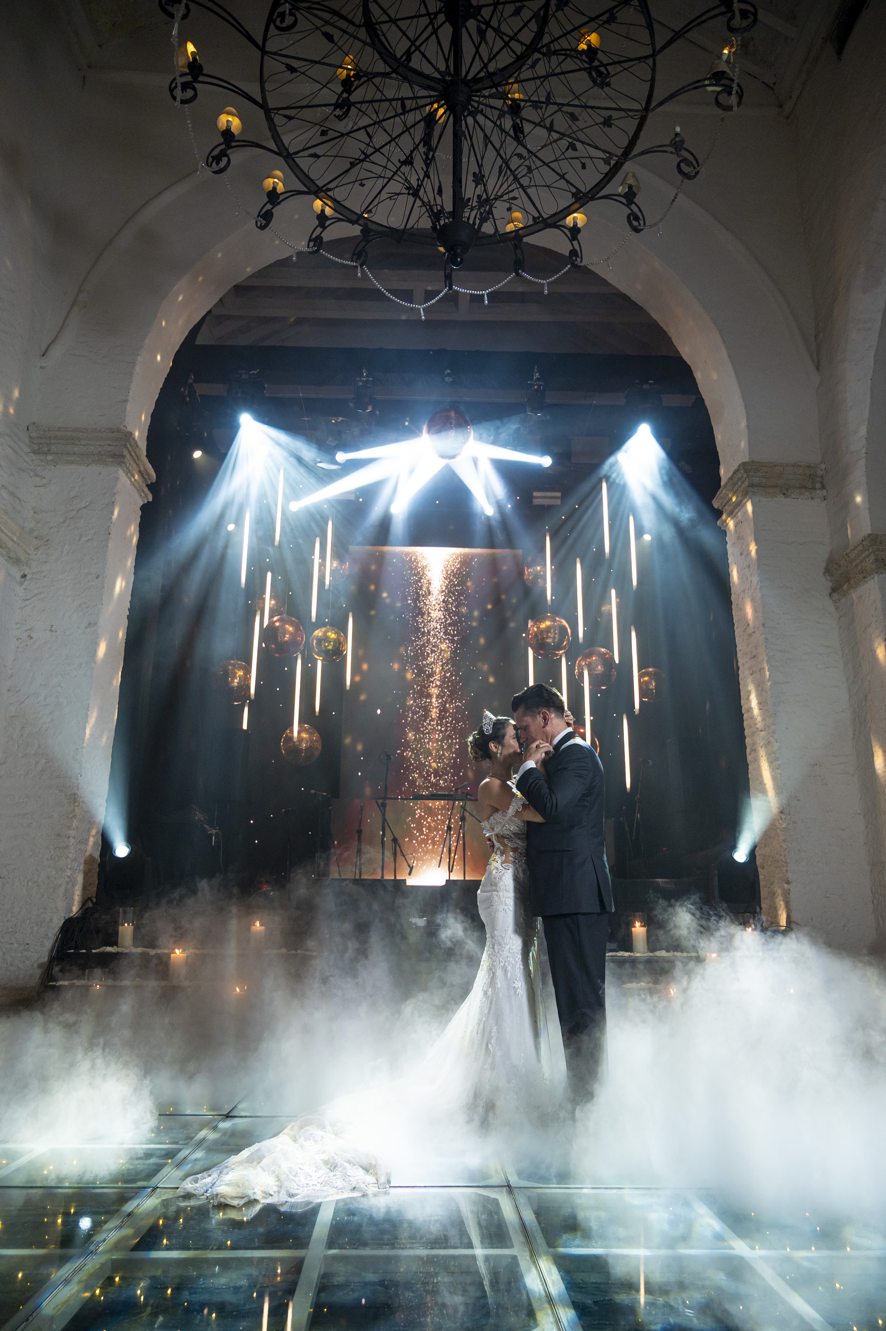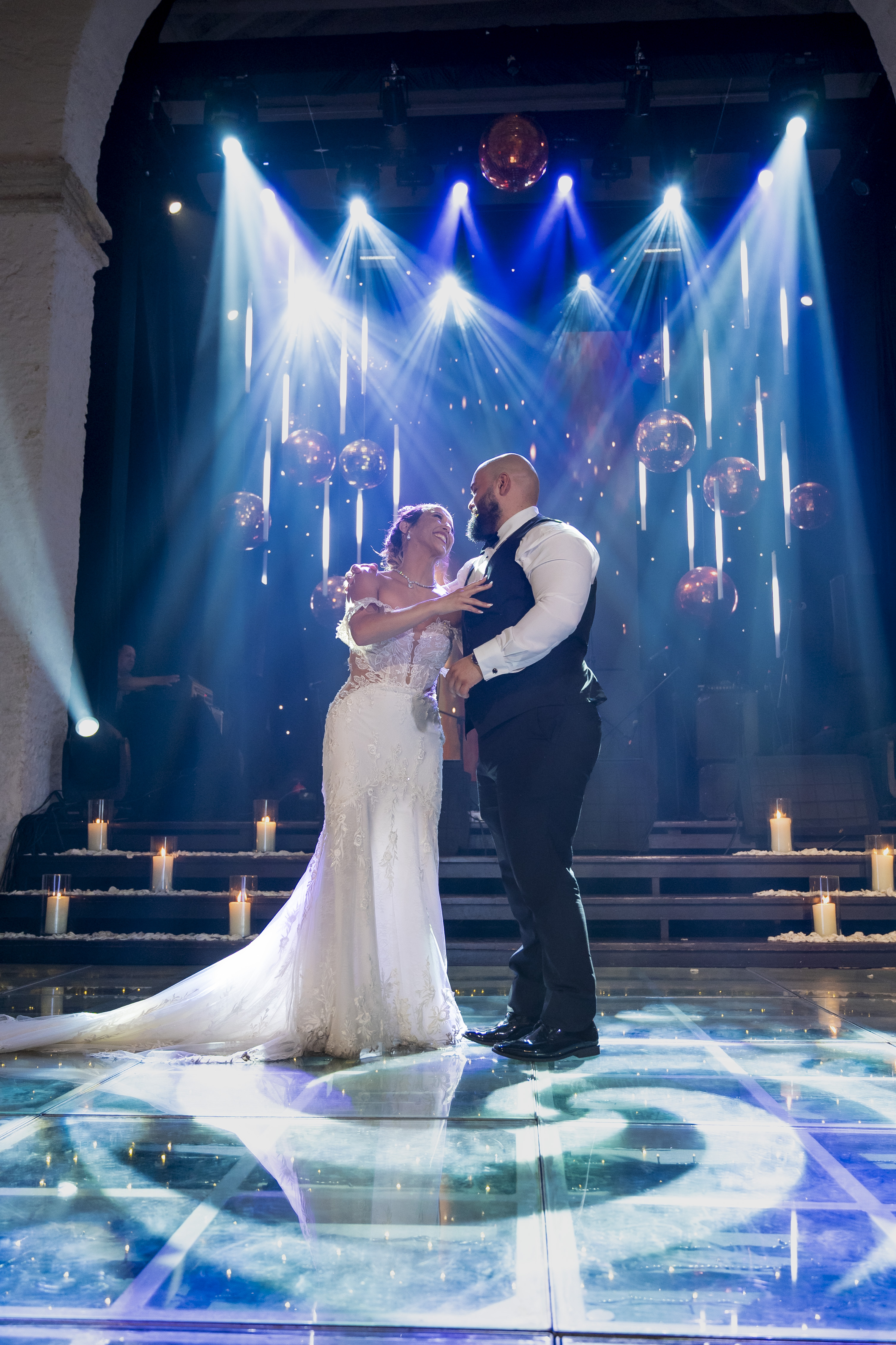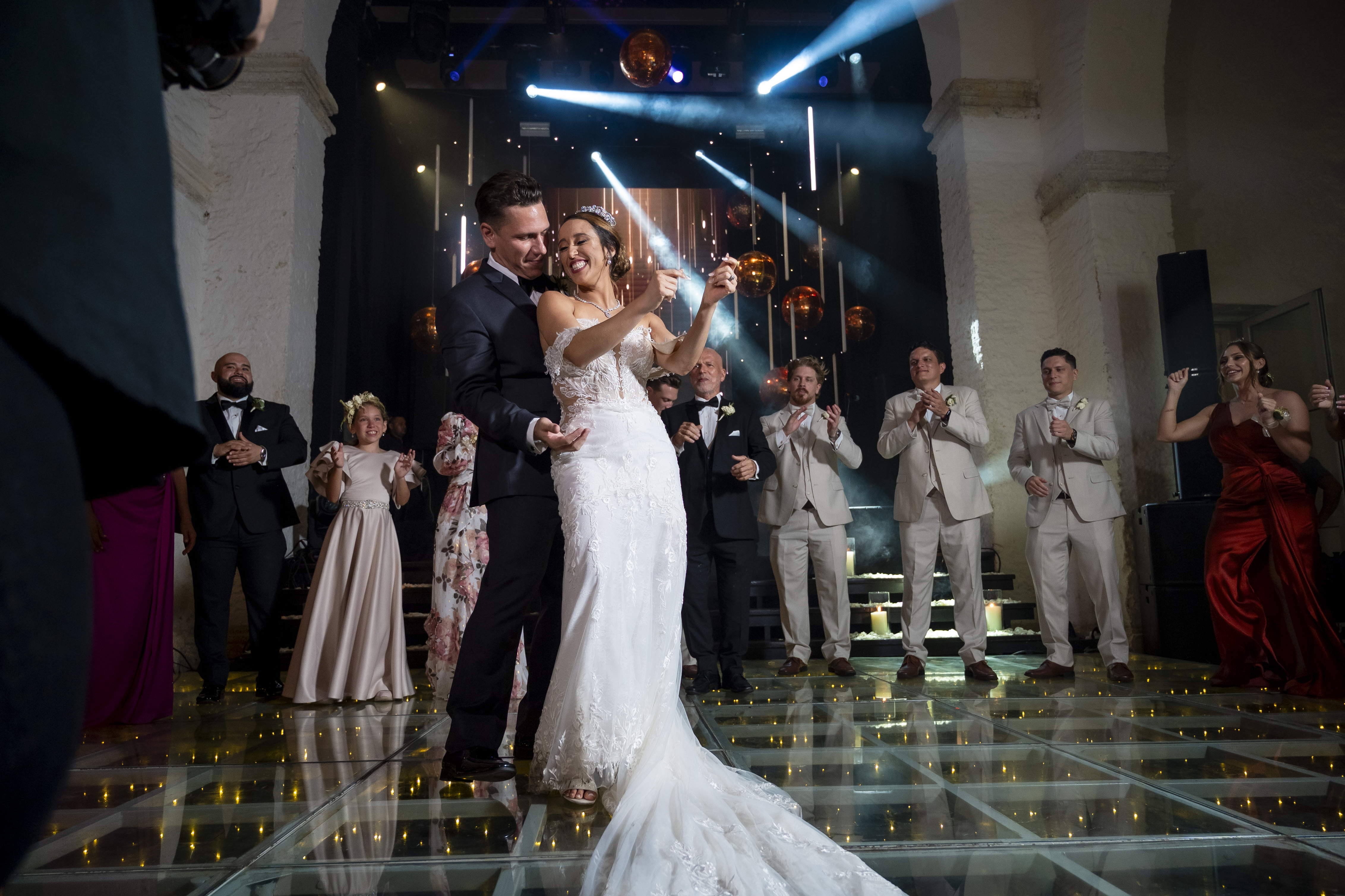 MODERN, FULL OF LIGHTS, COPPER DISCO BALLS WEDDING