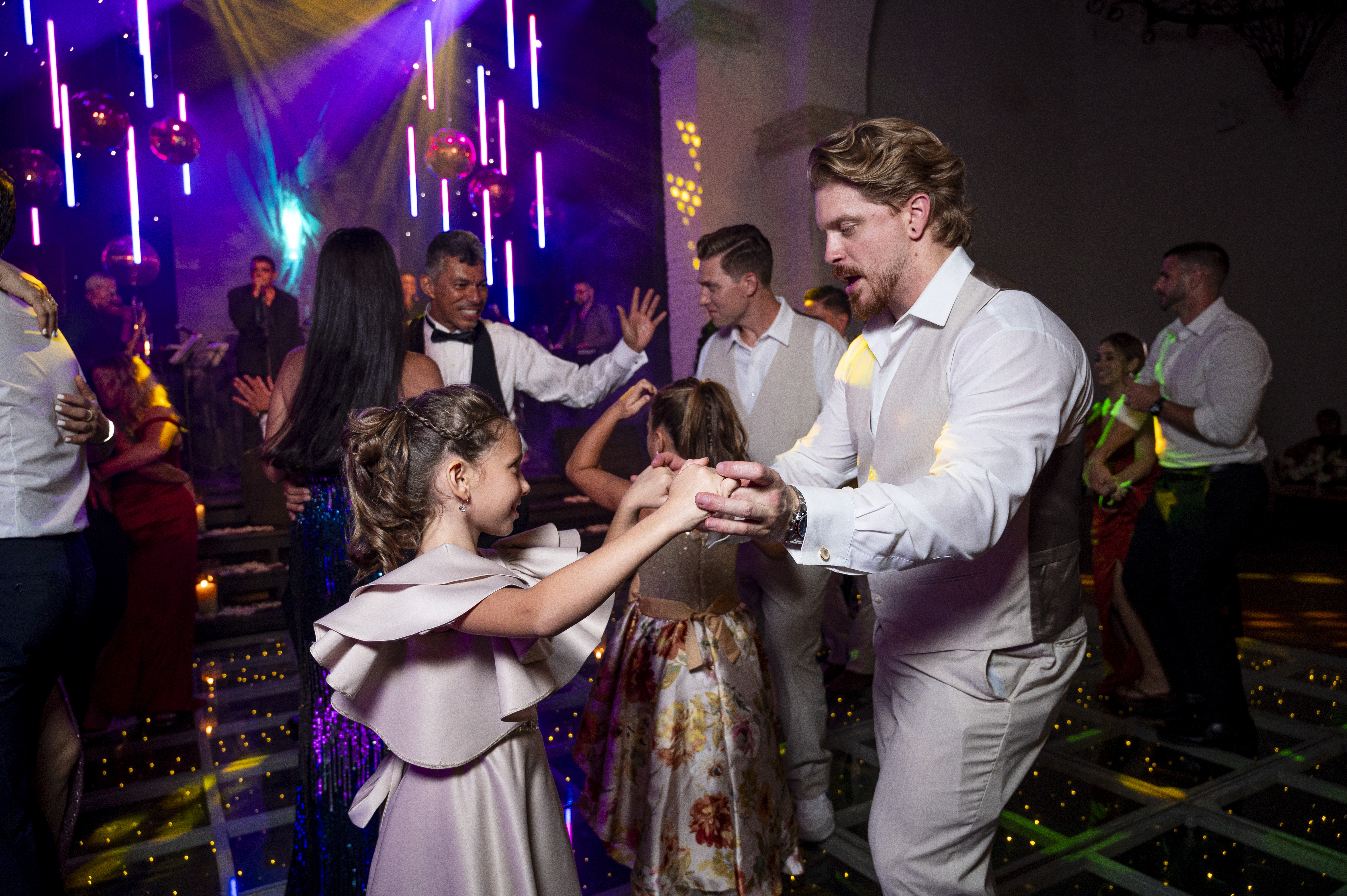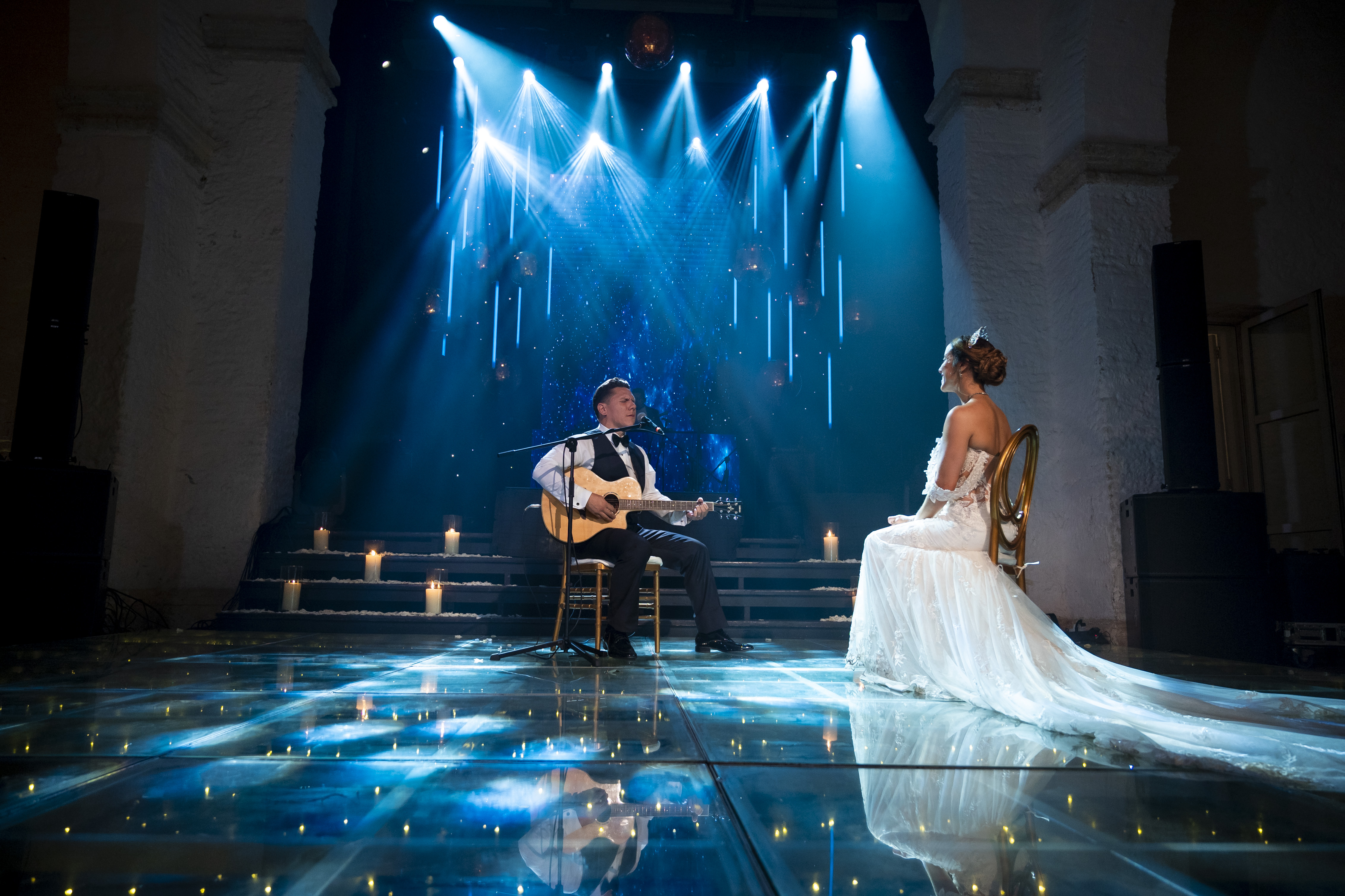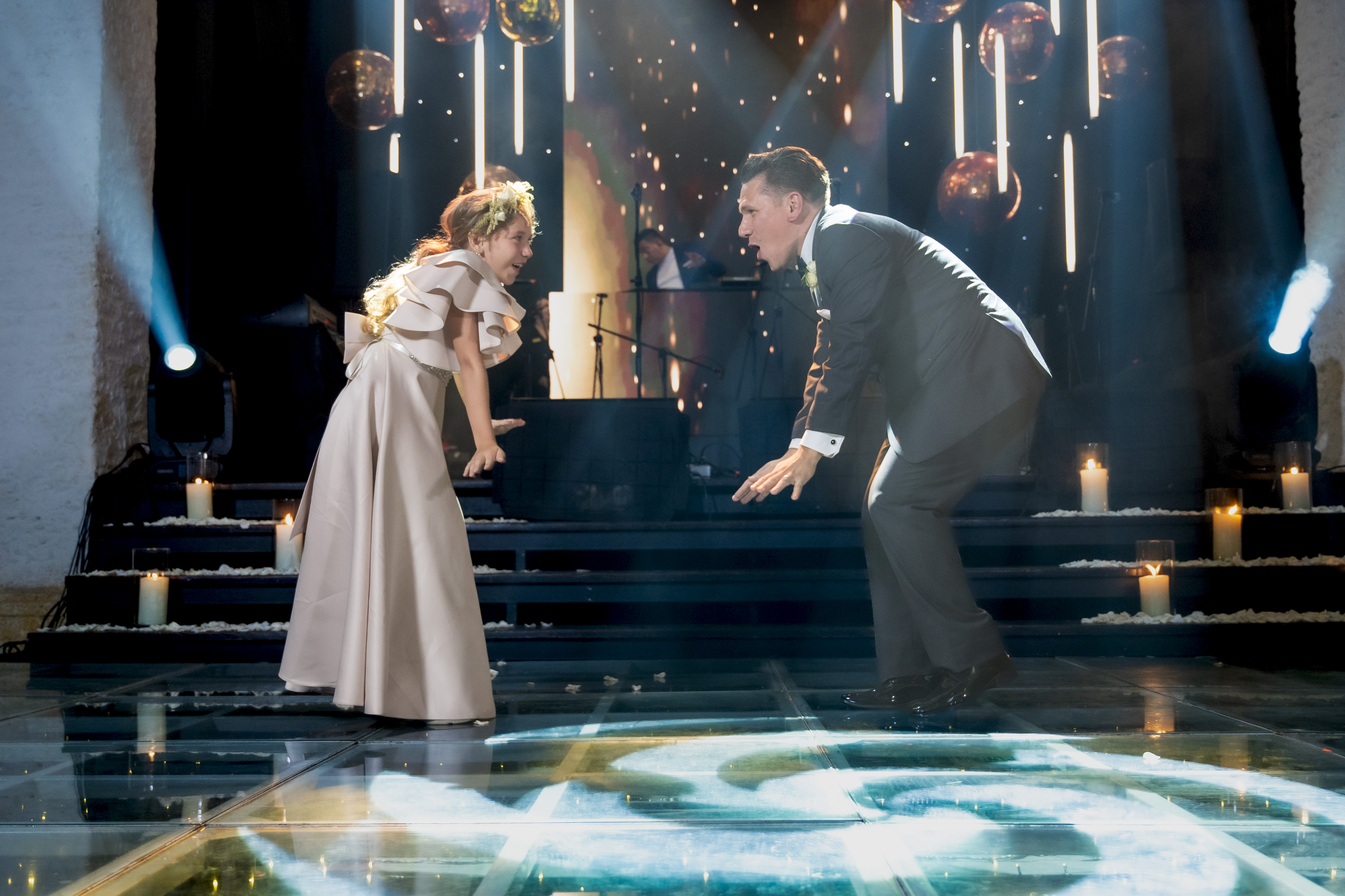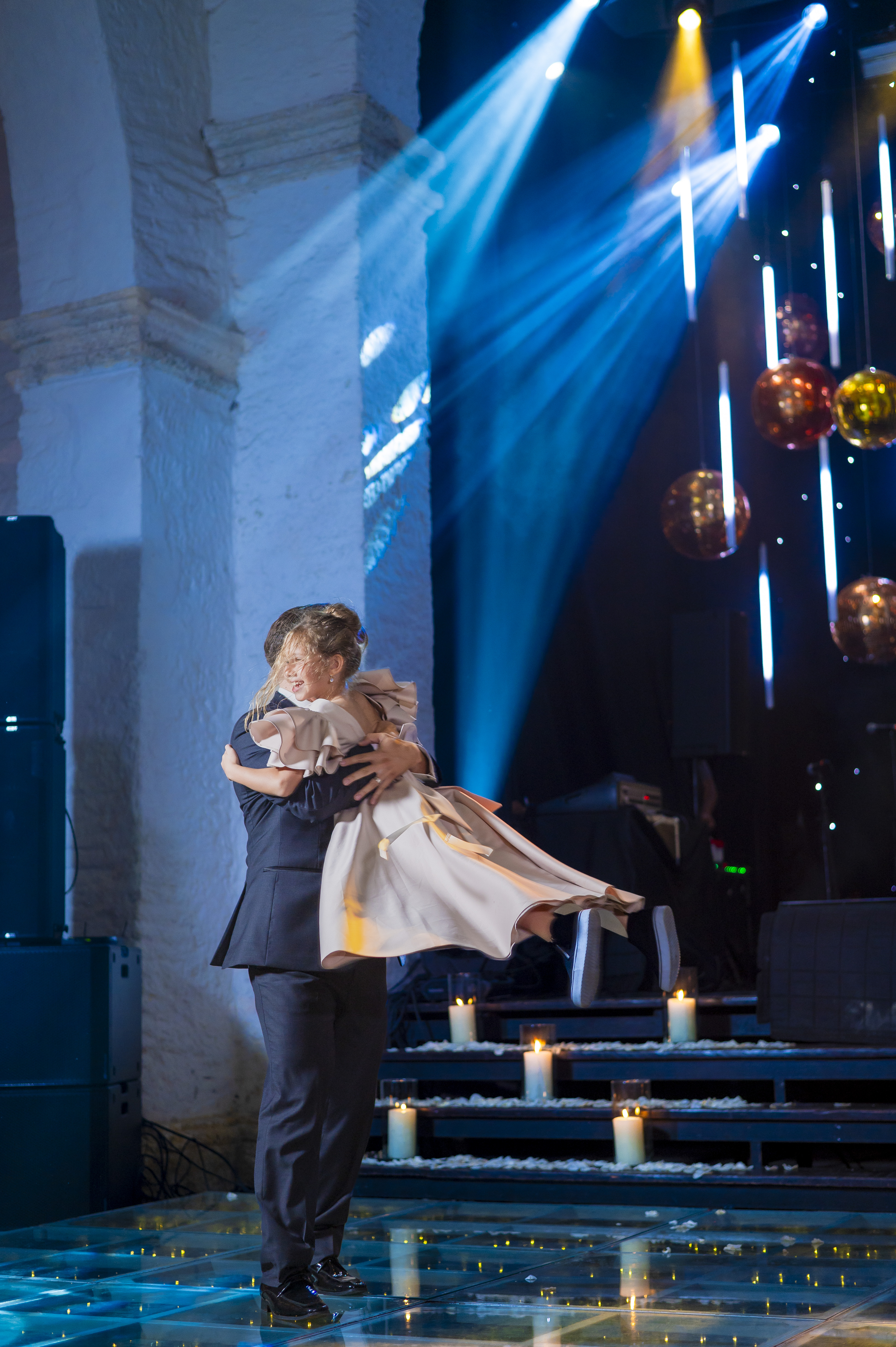 MODERN, FULL OF LIGHTS, COPPER DISCO BALLS WEDDING
