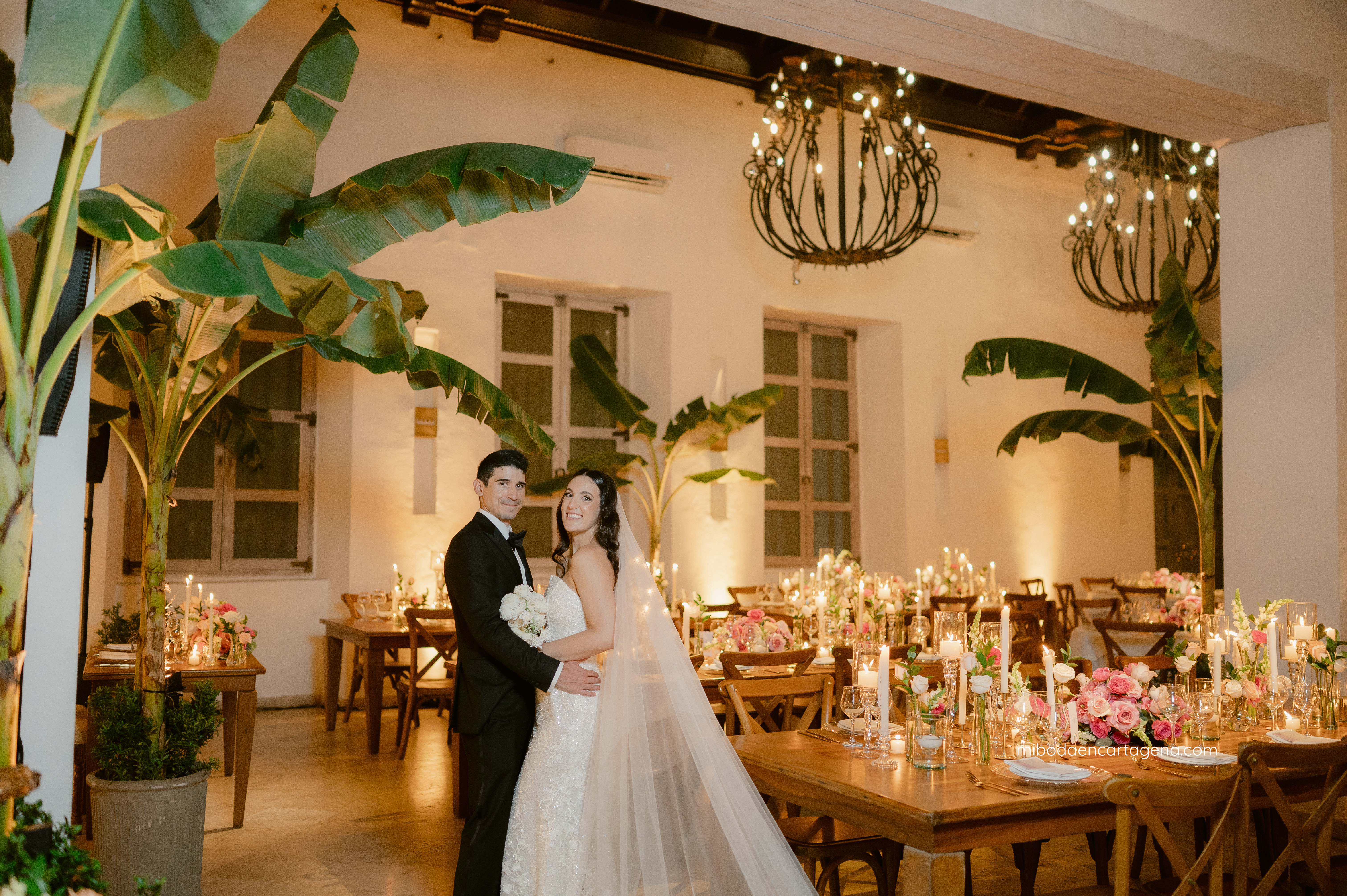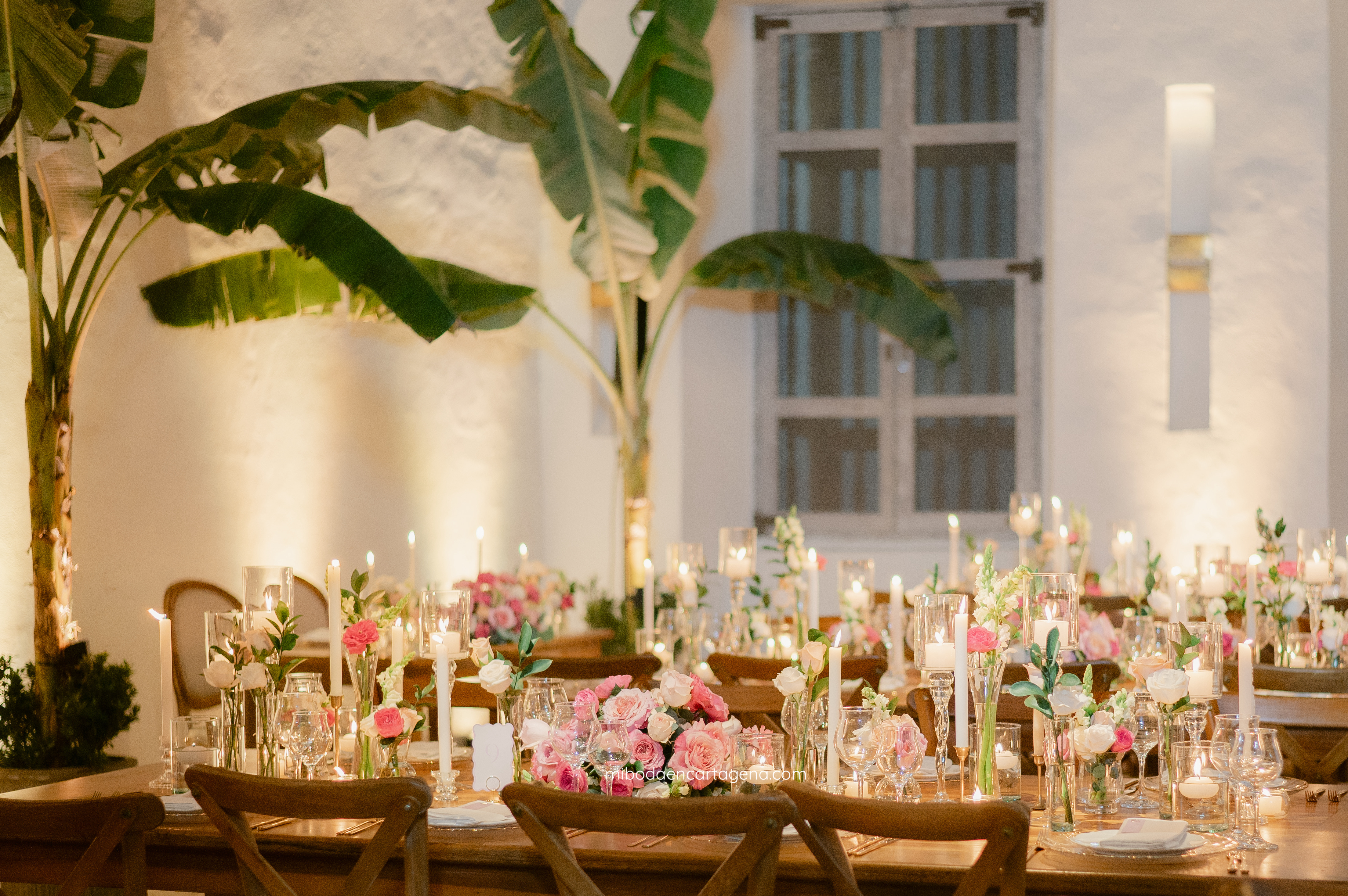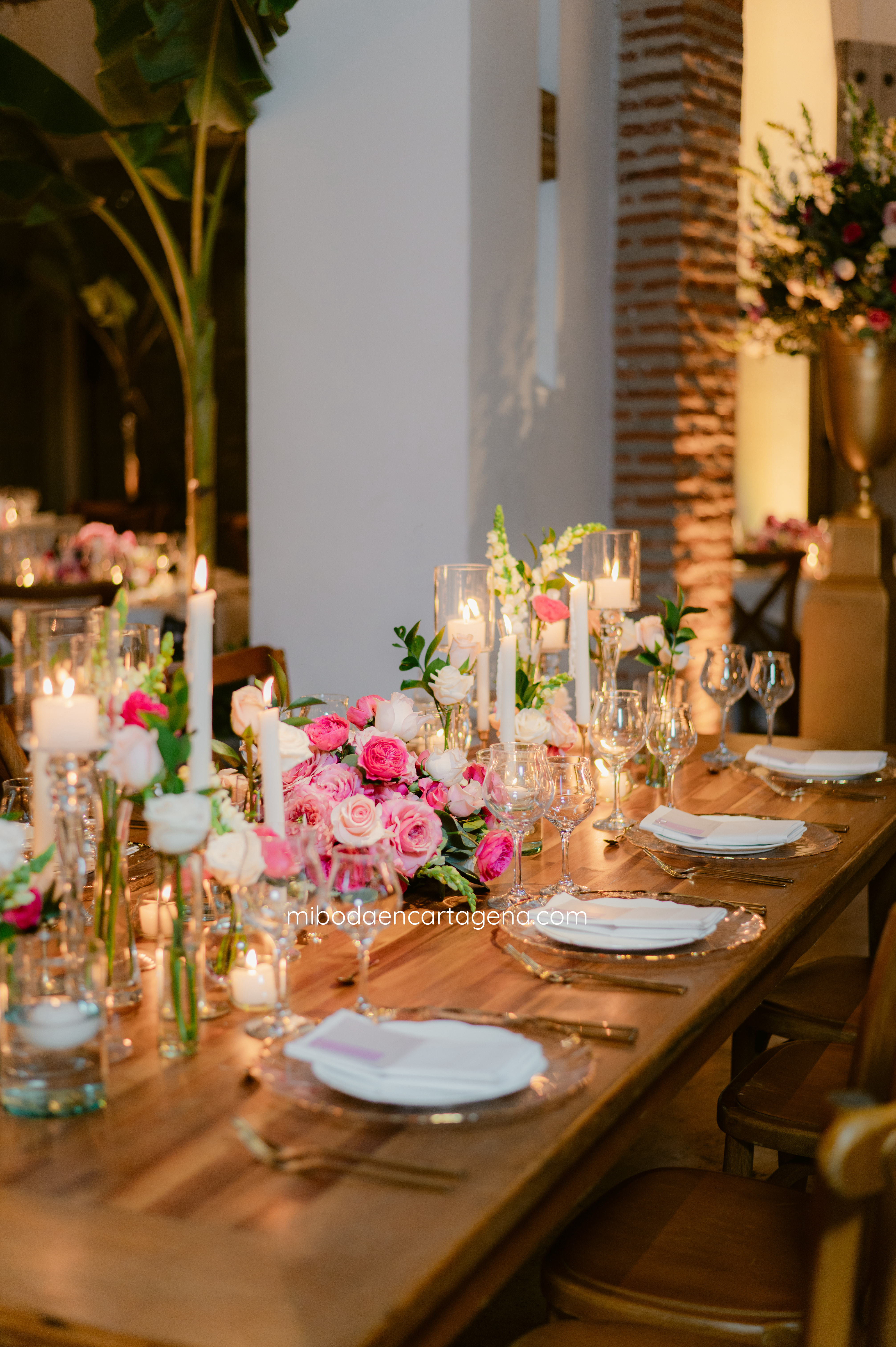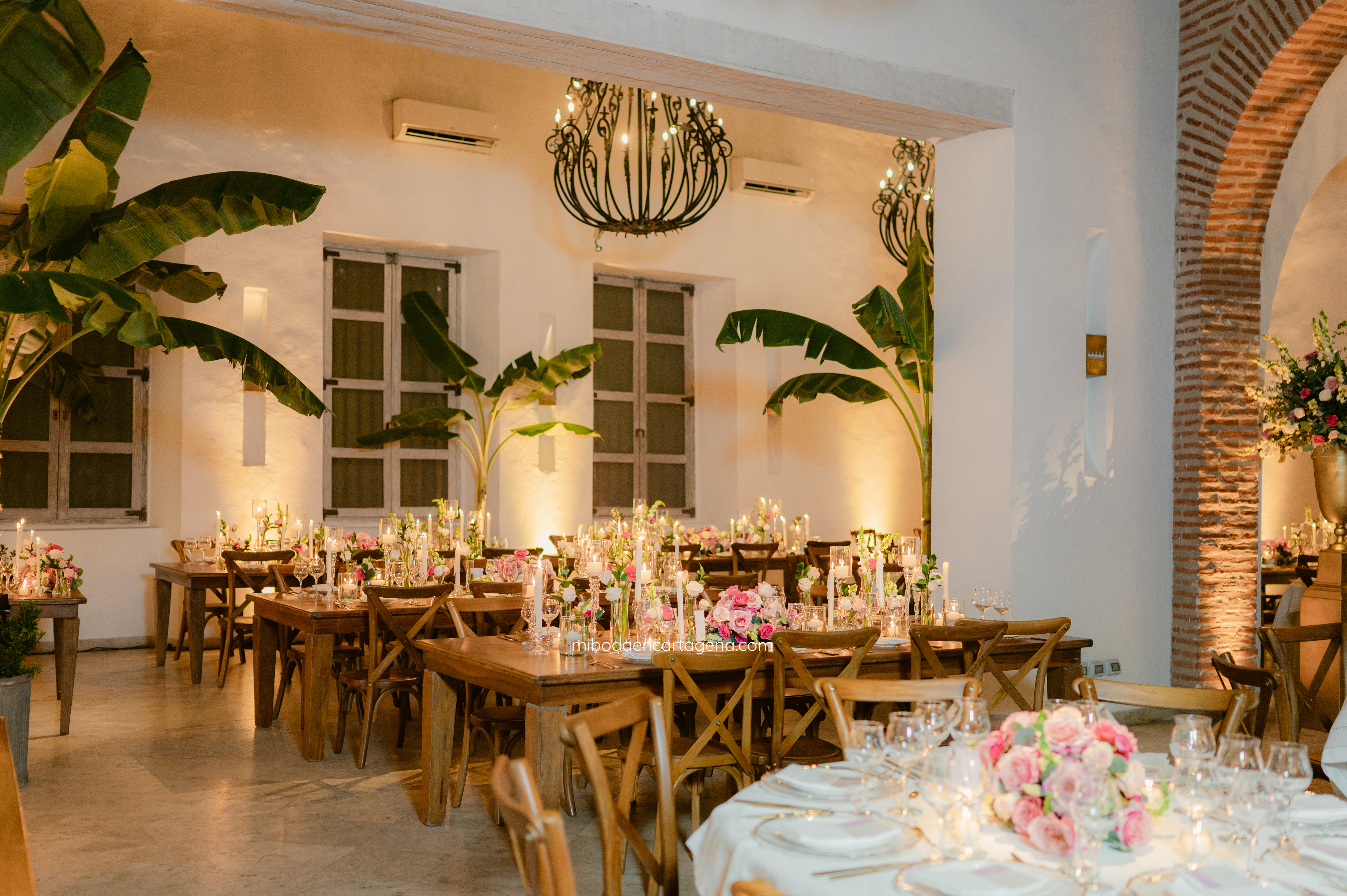 This was an exceptional pink celebration of love at a Cartagena Wedding: Embracing the beauty of this venue with elegant pinks and greens at this dreamy candlelit garden wedding reception for Nicole and Andres.