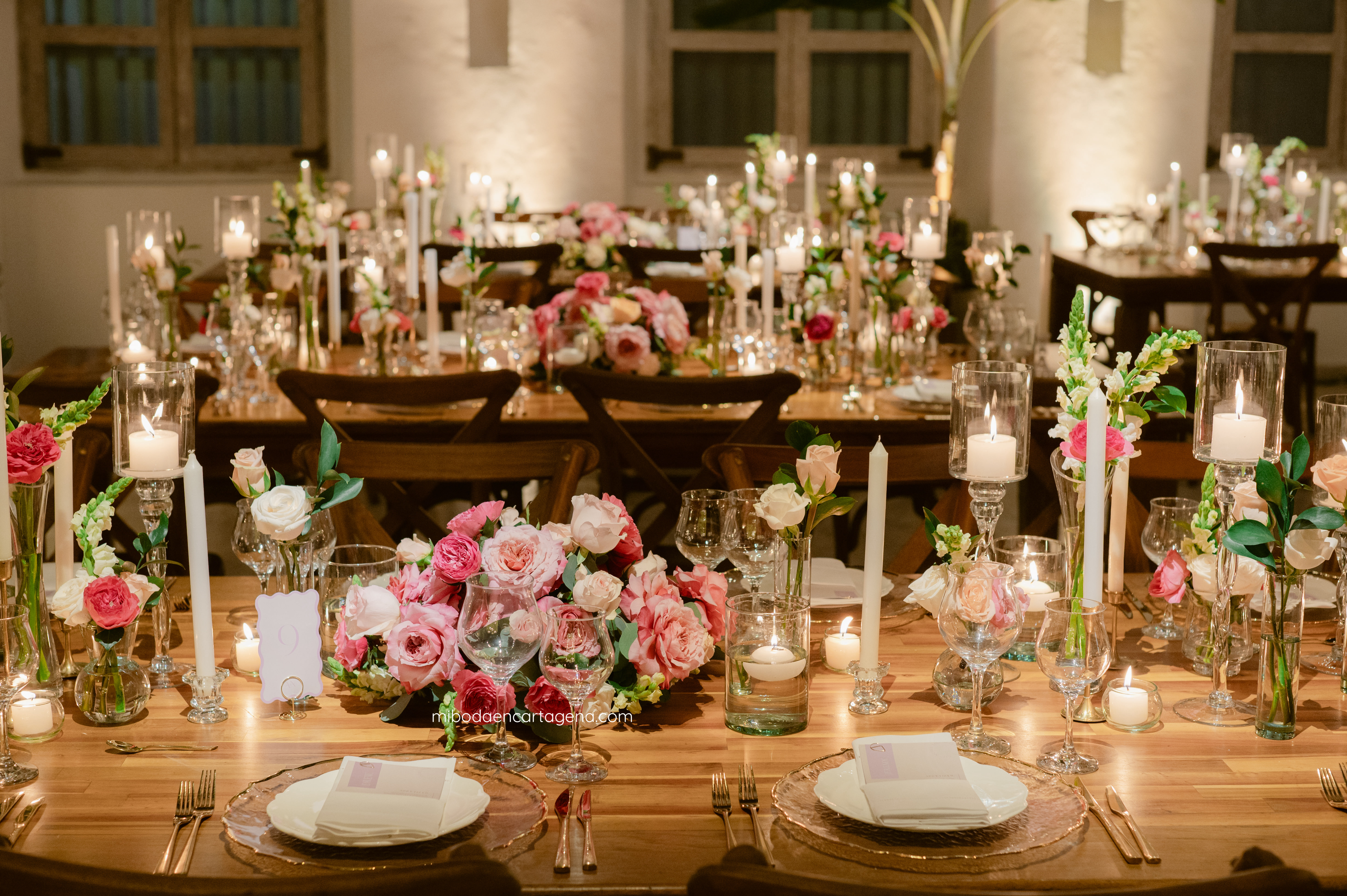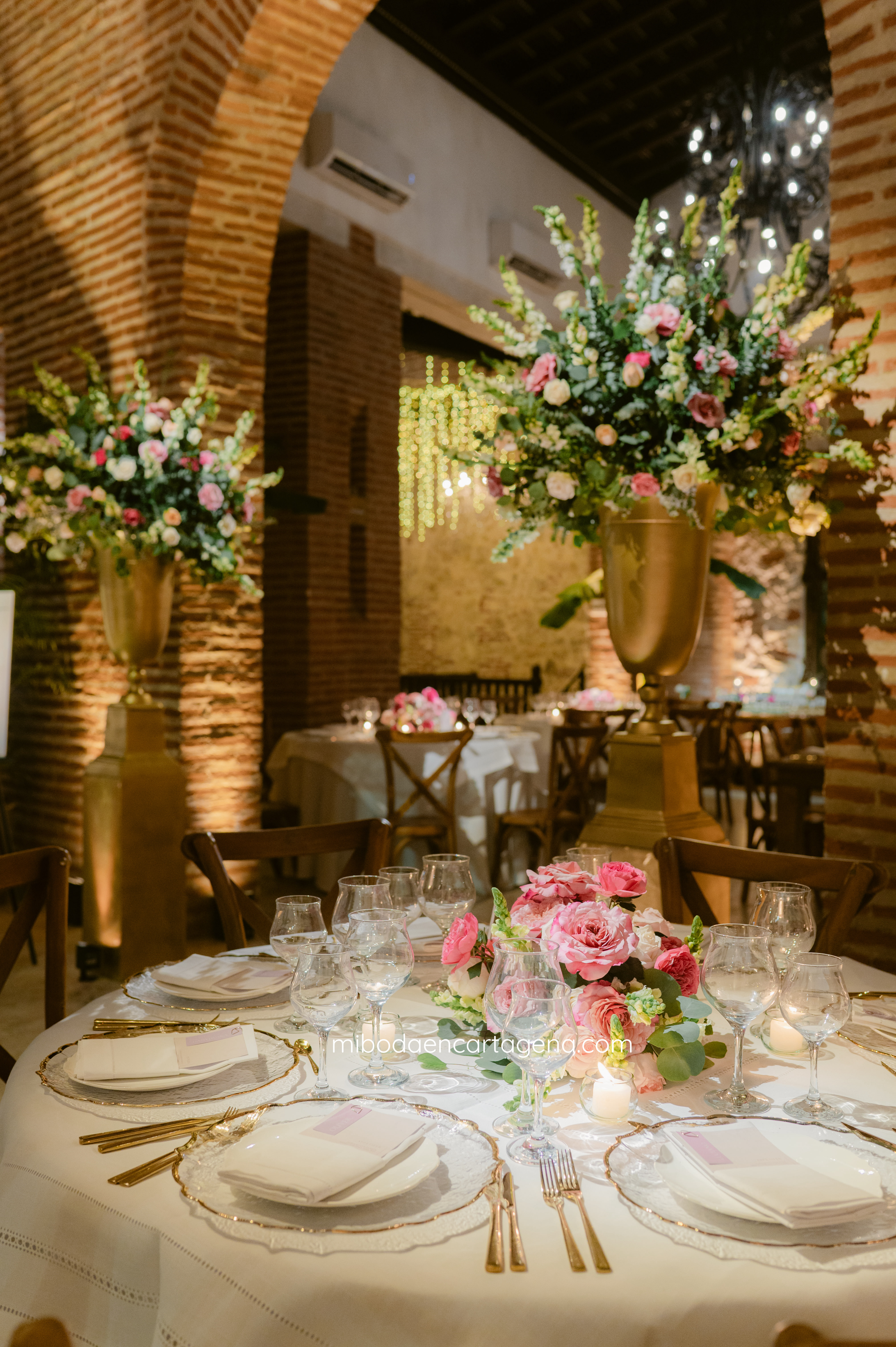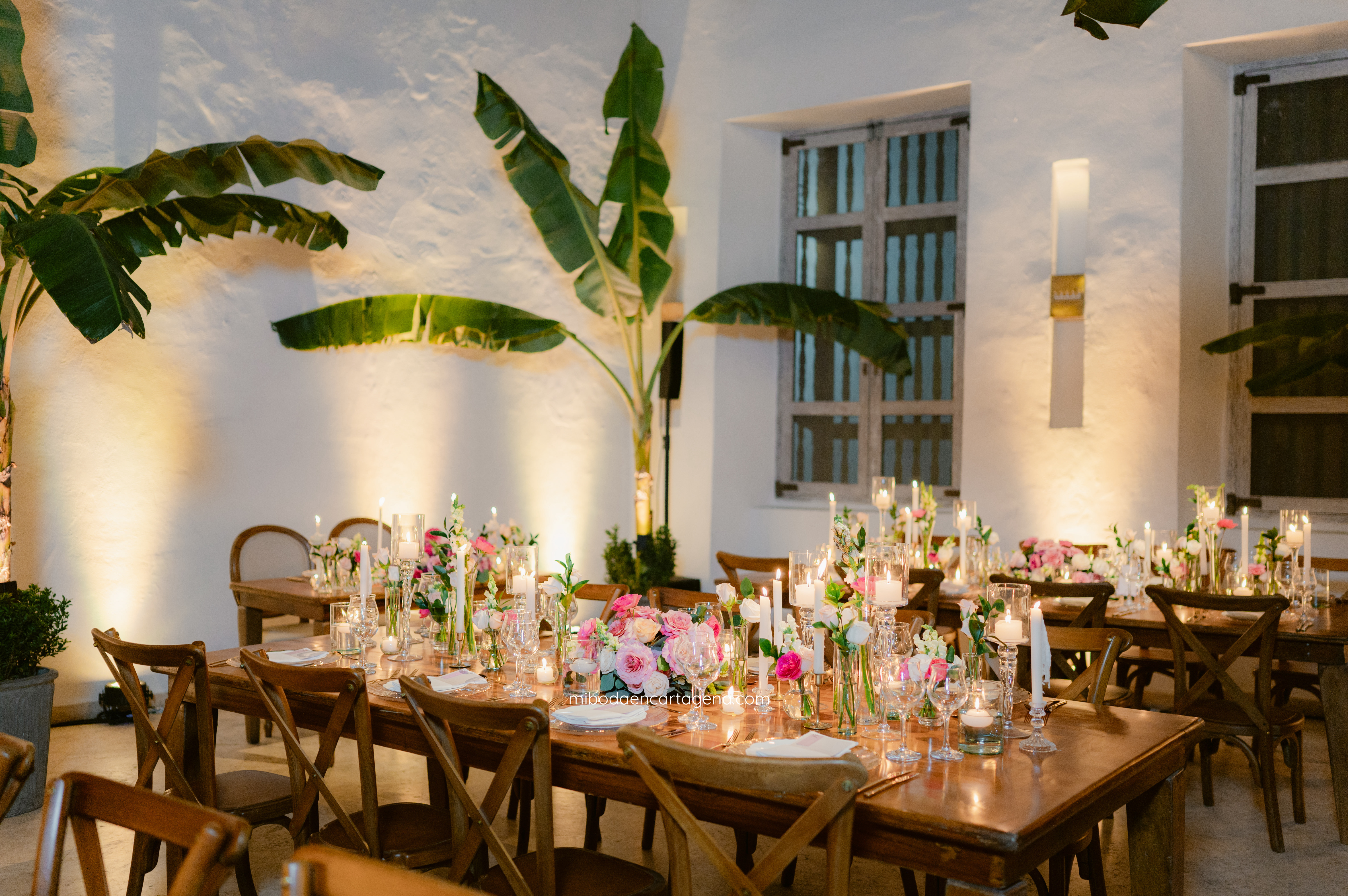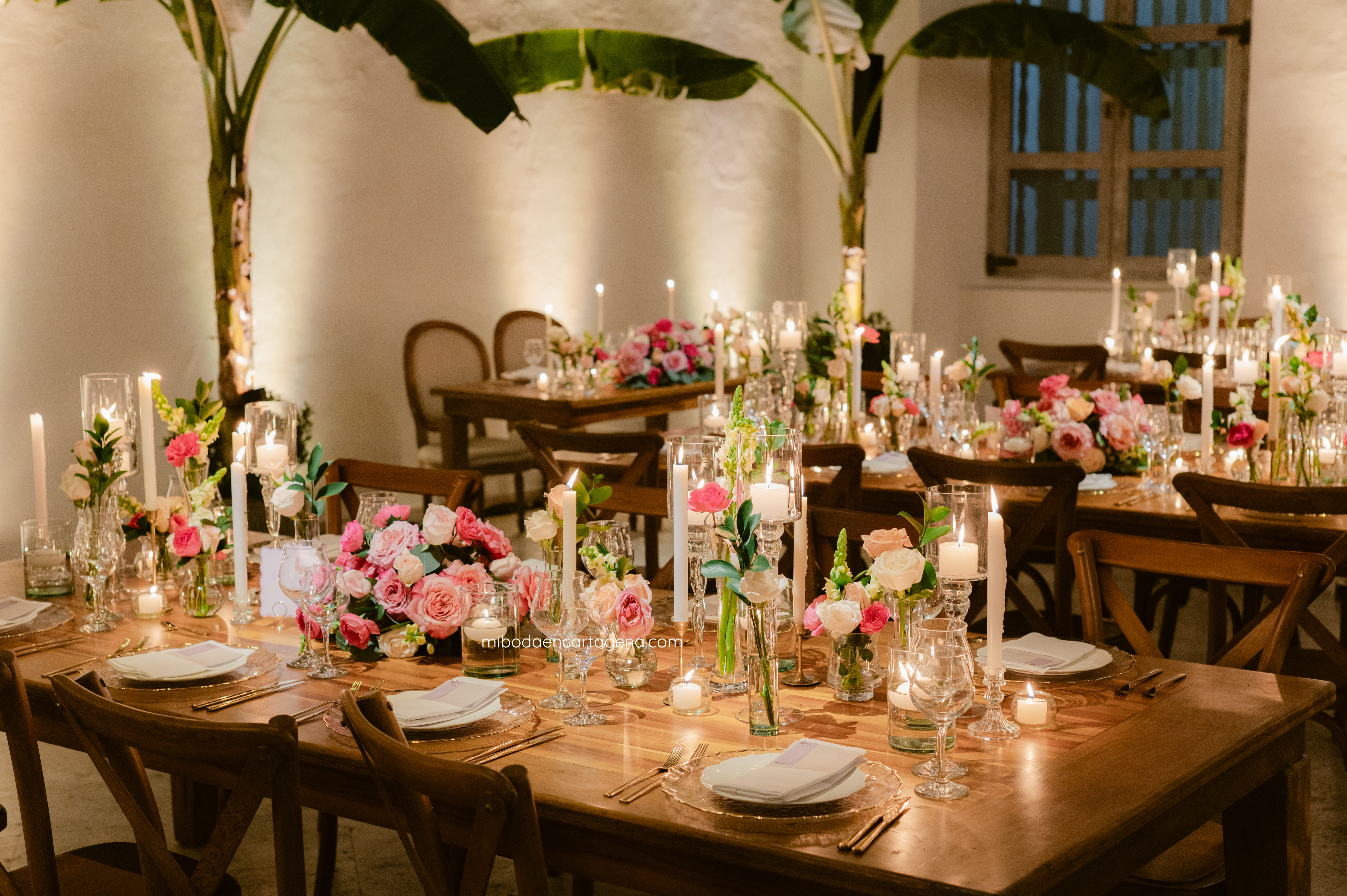 This was an exceptional pink celebration of love at a Cartagena Wedding: Embracing the beauty of this venue with elegant pinks and greens at this dreamy candlelit garden wedding reception for Nicole and Andres.